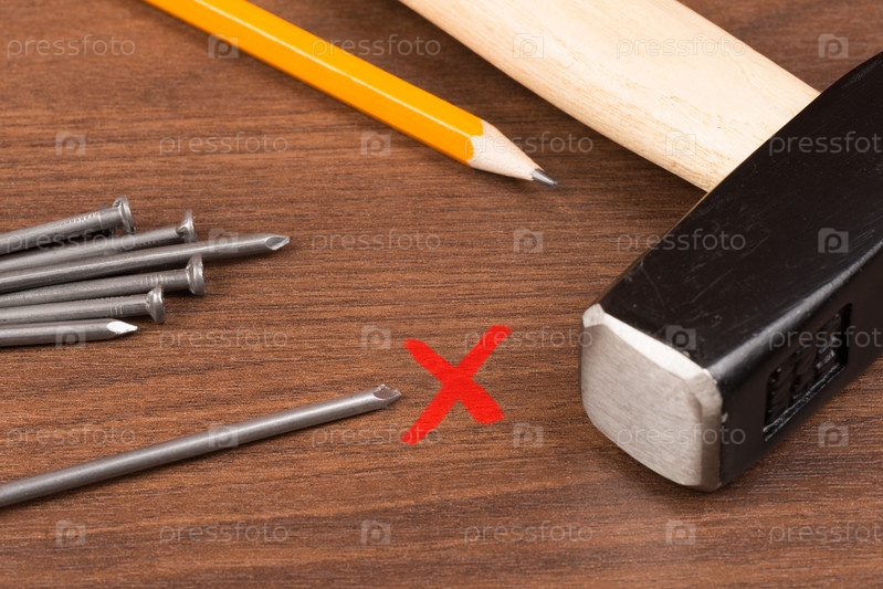 Молоток и гвозди на столе