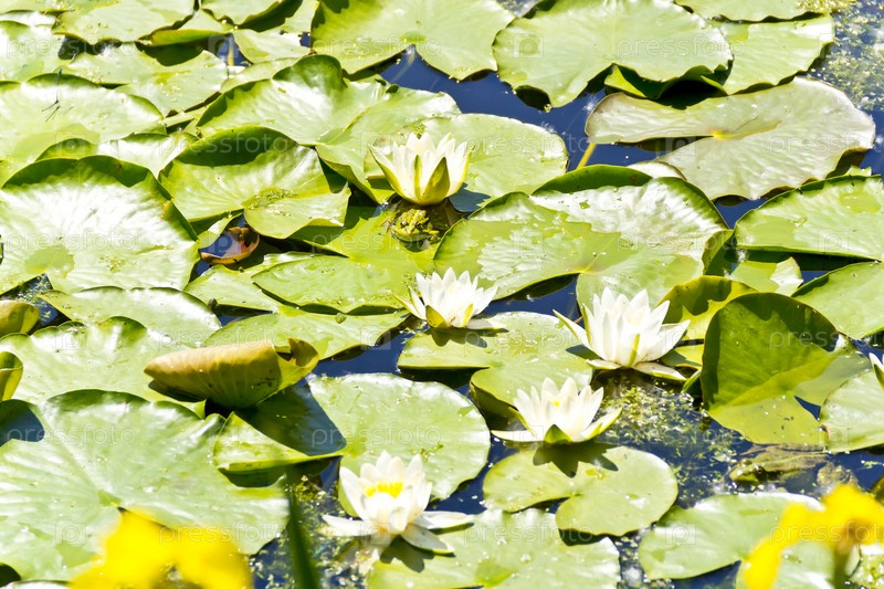 Озеро с водяными лилиями и лягушка
