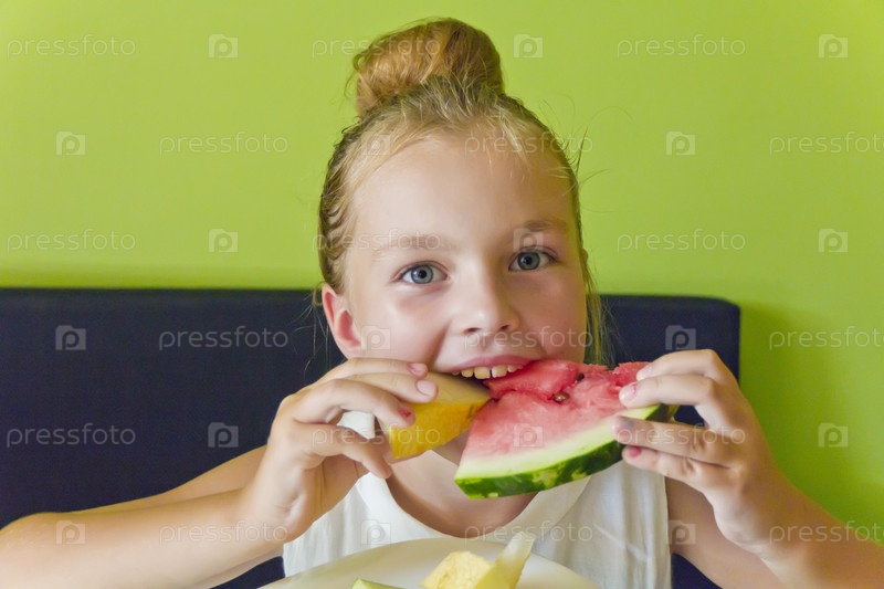 Девочка ест арбуз