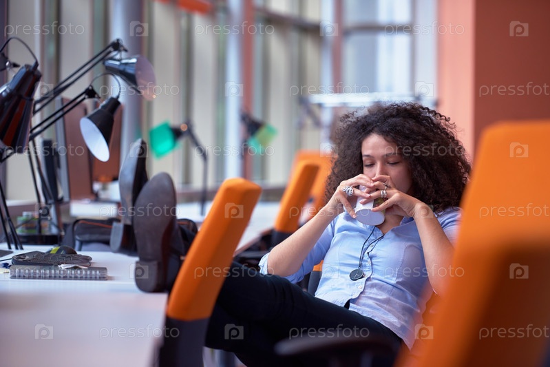 спокойной деловой женщины имеют кофе-брейк