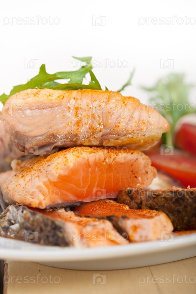 Лосось с салатом из овощей