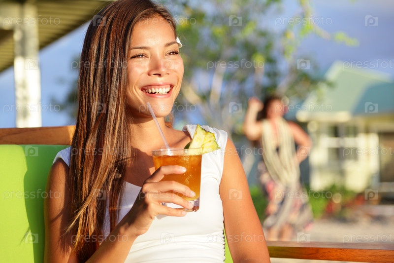 Женщина пьет алкоголь на Гавайях