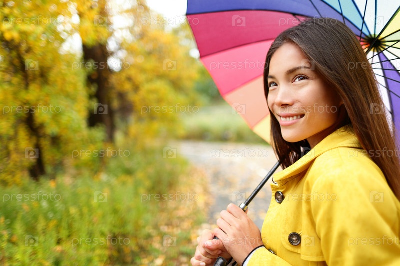 Женщина с зонтом под дождем