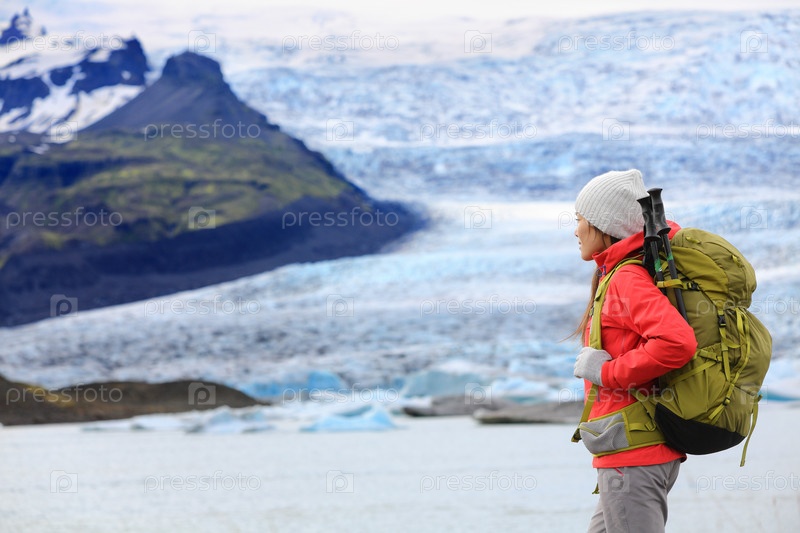 Женщина на леднике в Исландии