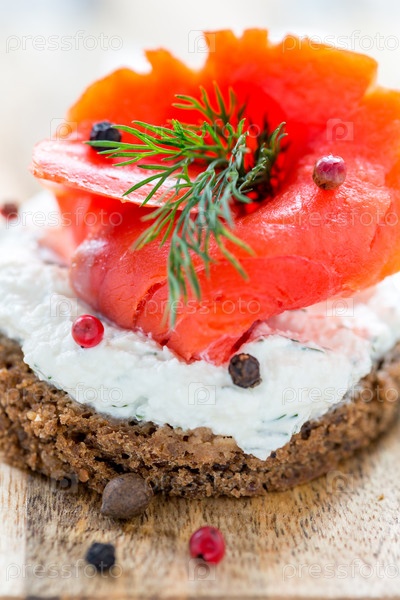 Ржаной хлеб, мягкий сыр с травами и соленая нерка