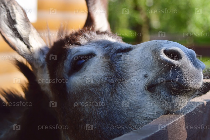 Осел в загоне зоопарка