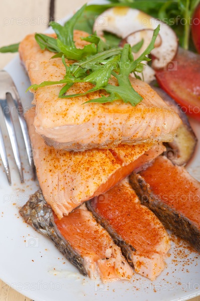 Лосось с салатом из овощей