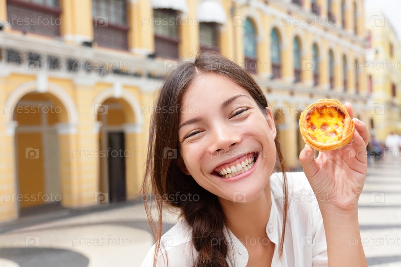 Женщина показывает традиционную местную еду. Макао