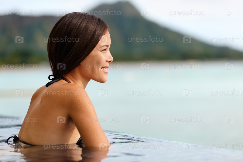 Женщина в бассейне на Гавайях