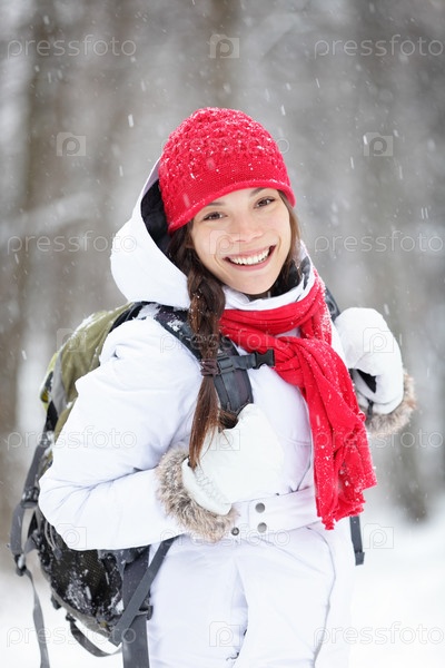 Веселая женщина на зимней прогулке