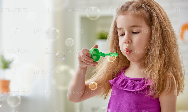 Девочка пускает мыльные пузыри