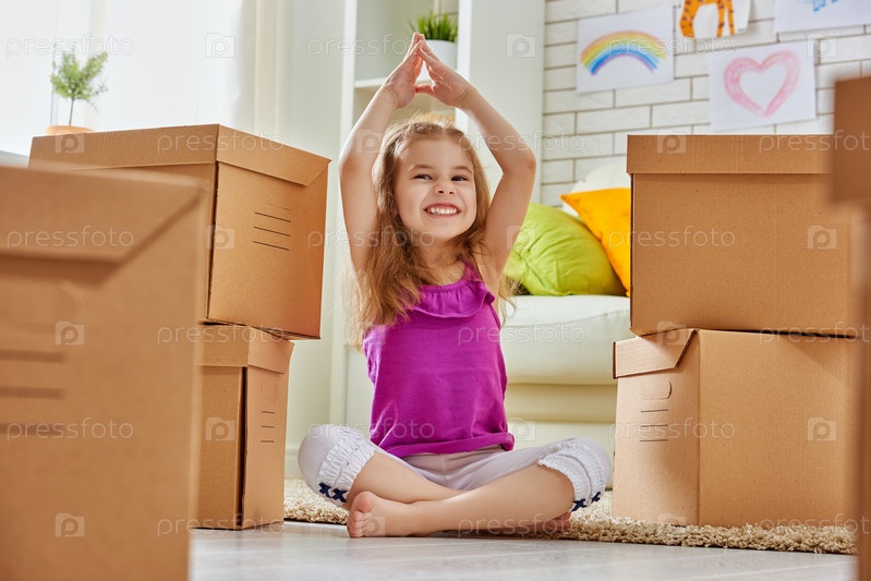 Девочка разбирает вещи в новом доме