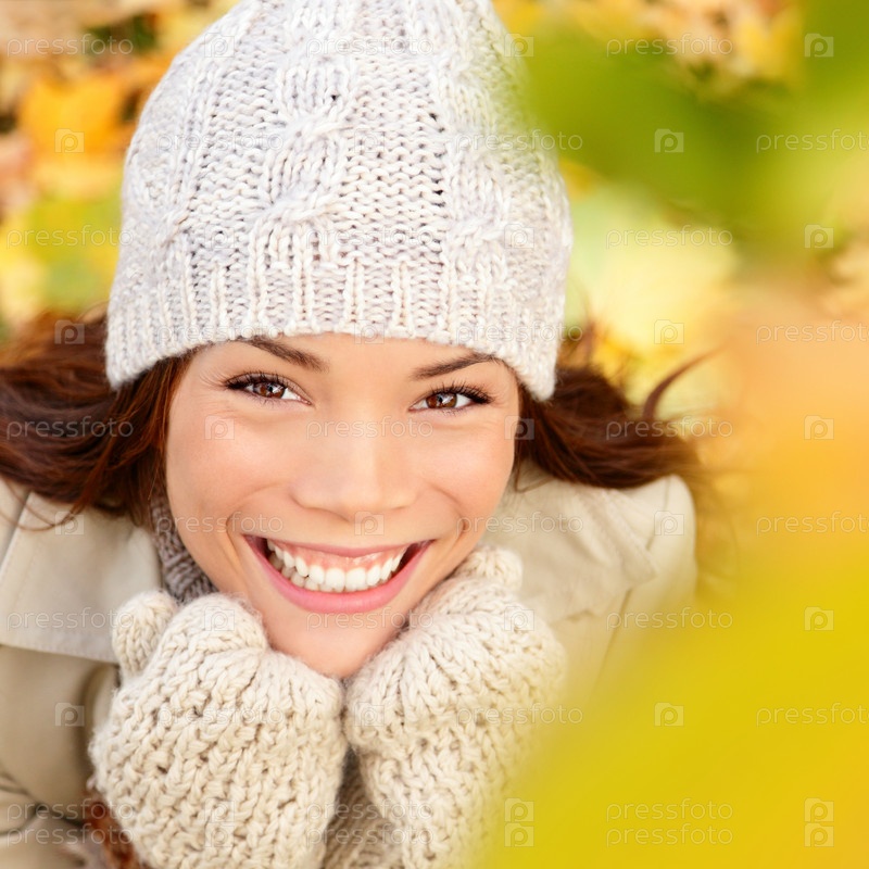 Счастливая женщина в осеннем парке