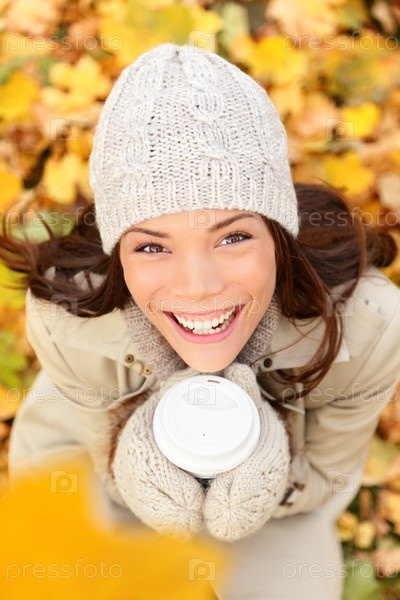Счастливая женщина в осеннем парке