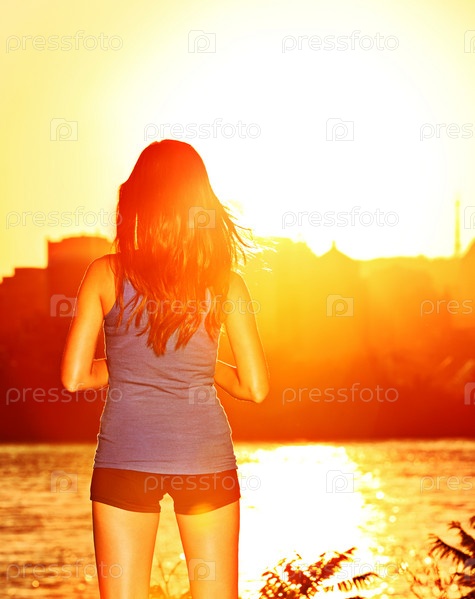Женщина наслаждается закатом