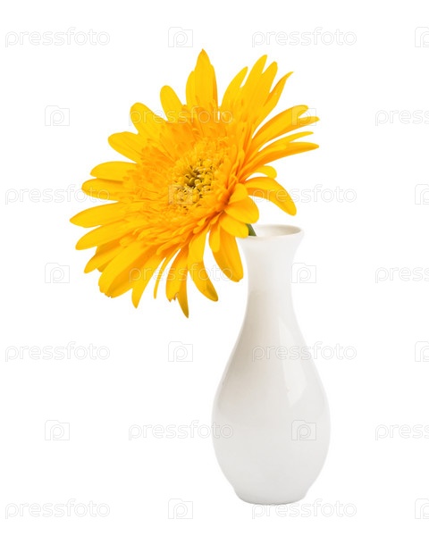 Желтая гербера в вазе на белом фоне