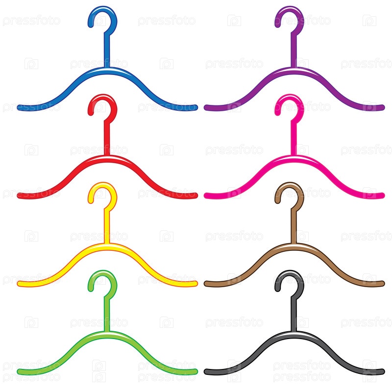 Набор разноцветных вешалок. Иллюстрация на белом фоне