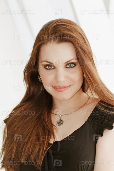 Портрет красивой девушки в белом помещении