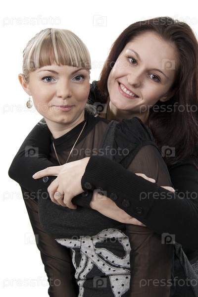 Две веселых подруги на белом фоне