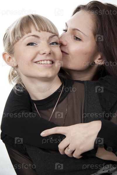 Две веселых подруги на белом фоне