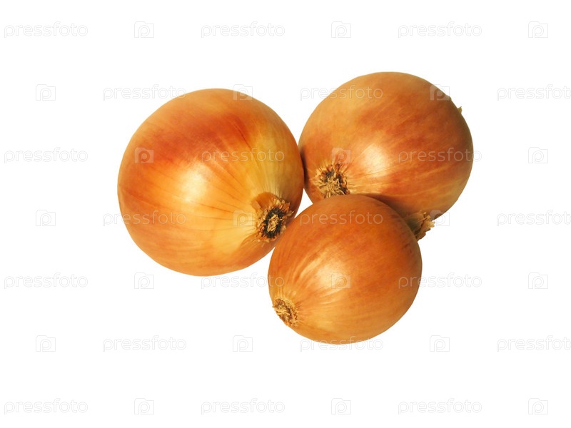 Три луковицы на белом фоне