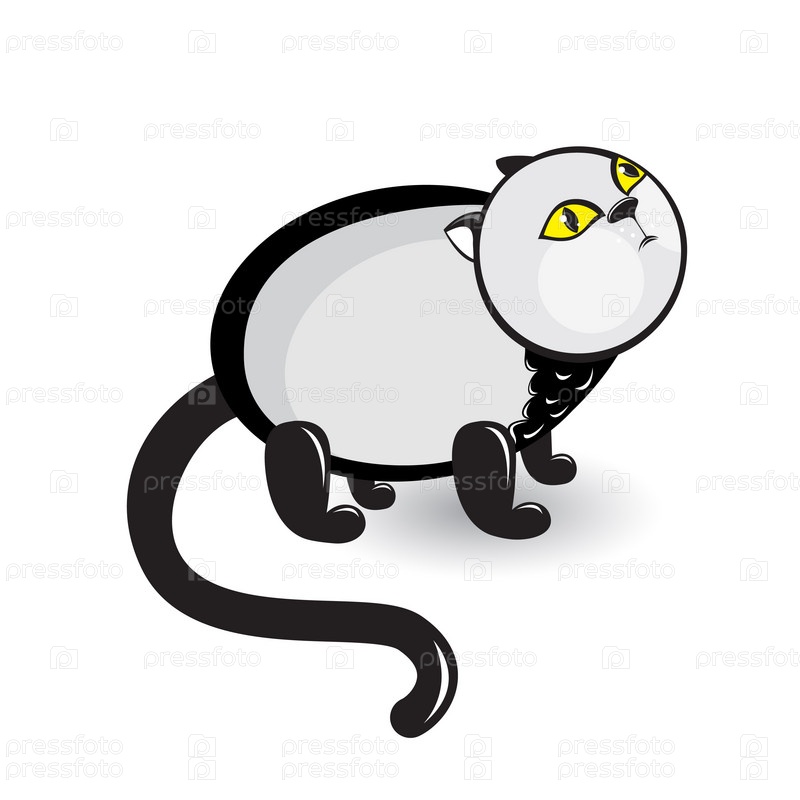 Серый кот с грустными глазами, иллюстрация на белом фоне