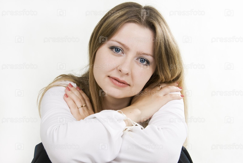 Красивая женщина с длинными волосами на белом фоне