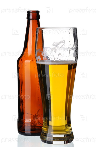 Стакан пива и бутылка, изолированные на белом фоне