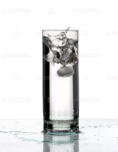 Стакан воды со льдом, изолированный на белом фоне