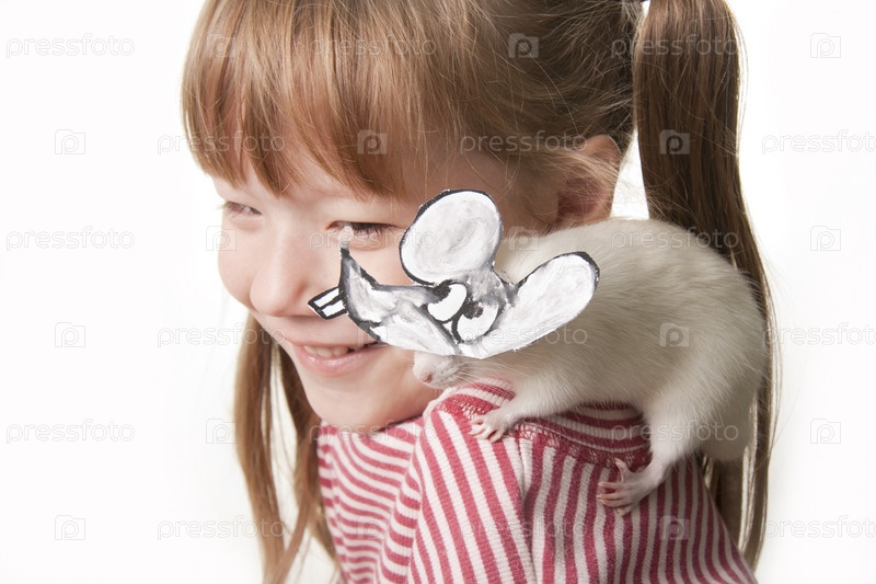 Маленькая девочка с мышкой на белом фоне