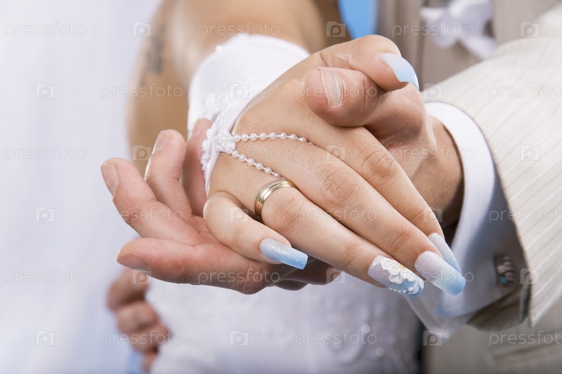 Руки жениха и невесты с кольцами крупным планом