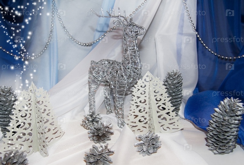 Зимняя композиция из оленя и шишек