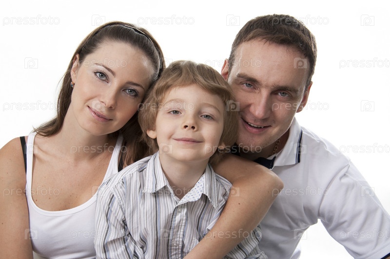Счастливая молодая семья на белом фоне