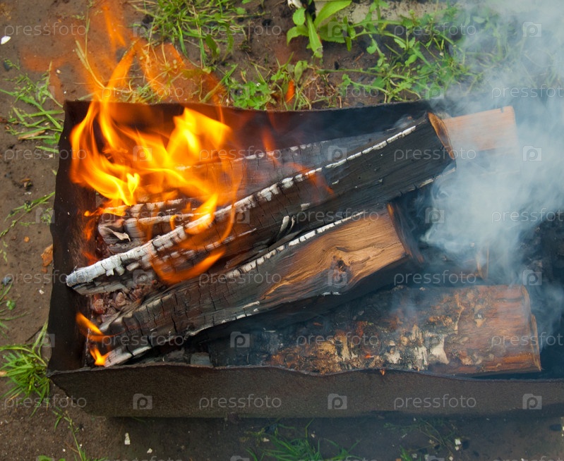 Горящие дрова в мангале
