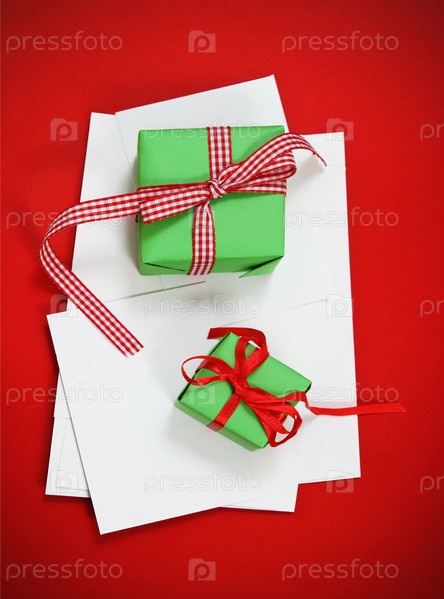 Рождественские открытки и подарки на красном фоне
