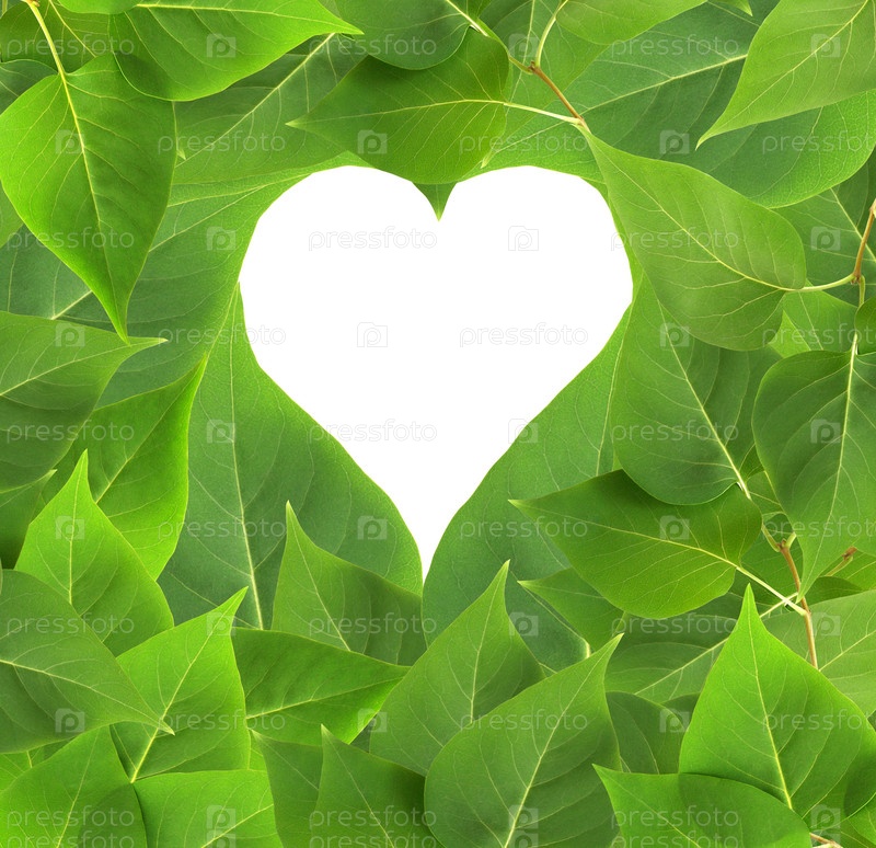 Концепт природы. Белое сердце для текста в центре зеленых листьев