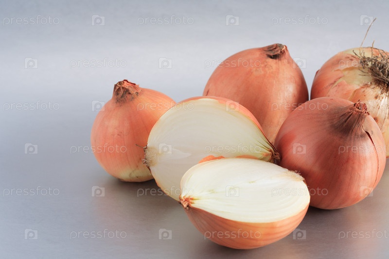 Головки лука на сером фоне