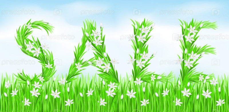Надпись 'SALE' из травы и цветов