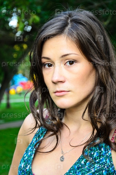 Молодая брюнетка на улице