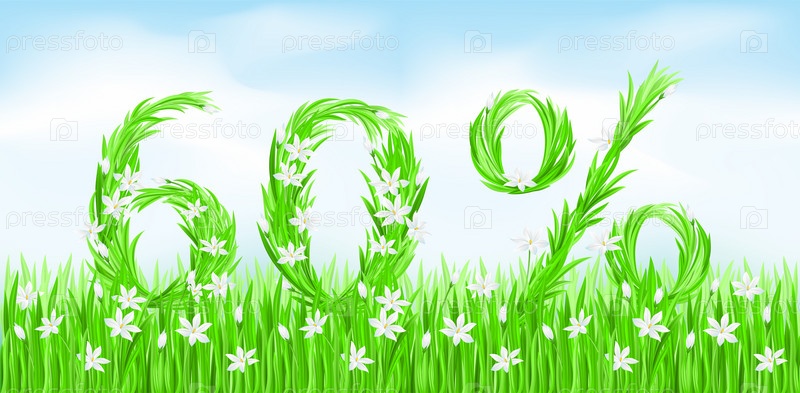 Надпись "60%" из травы и цветов