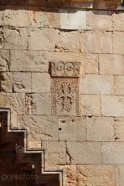 Хачкар в стене монастыря, Нораванк, Армения