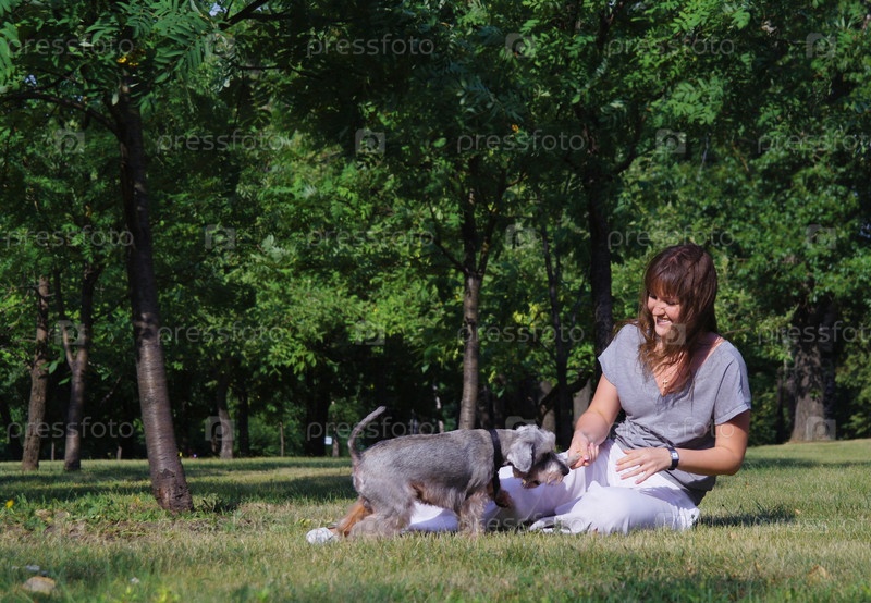 Девушка с маленькой собакой в парке