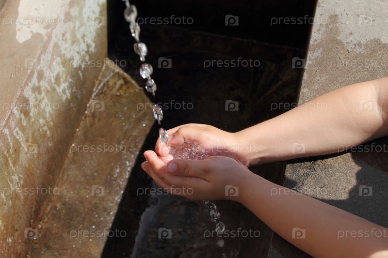 Руки под струей воды у монастыря, Армения