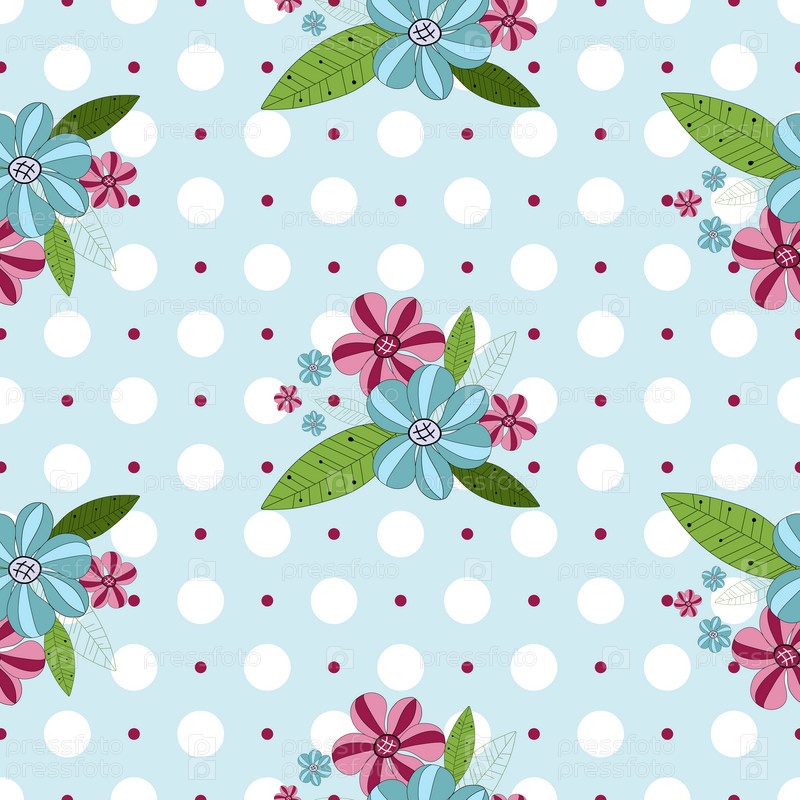 Бесшовная голубая текстура с цветочным орнаментом
