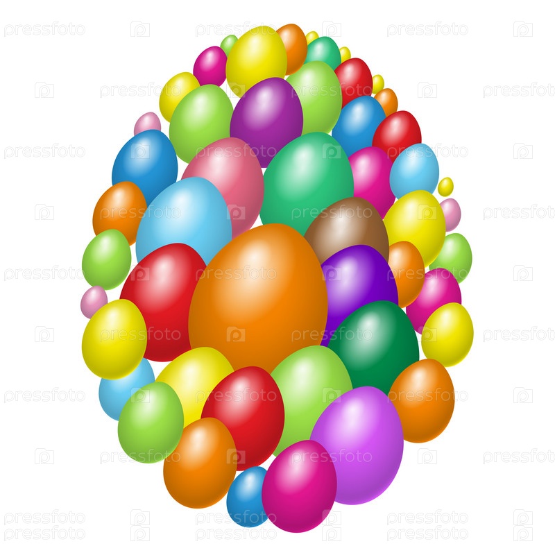 Набор разноцветных пасхальных яиц. Иллюстрация на белом фоне