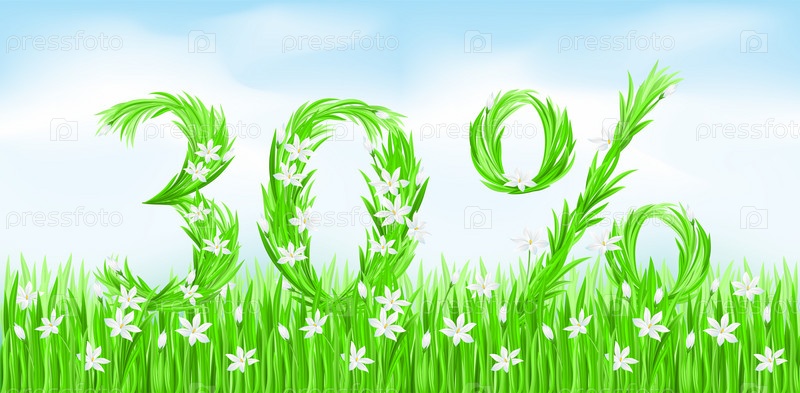 Эко-стиль. Надпись из травы - тридцать процентов. Буквы векторной версии