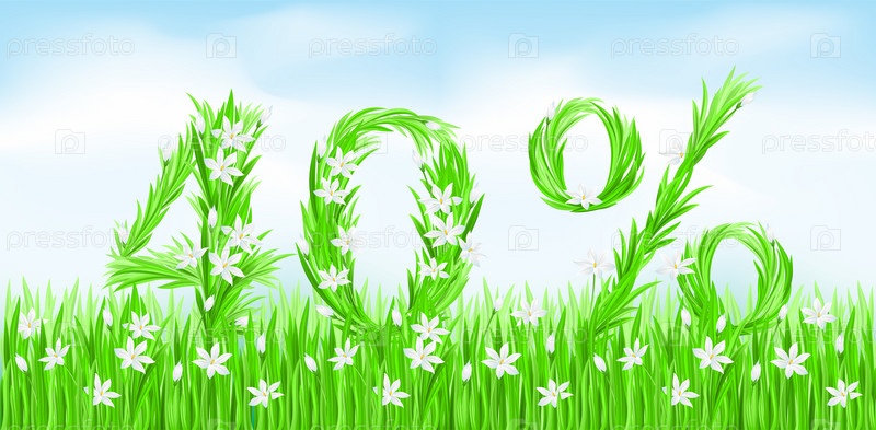 Эко-стиль. Надпись из травы - сорок процентов. Буквы векторной версии