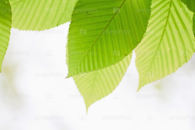 Свежие весенние листья в солнечных лучах