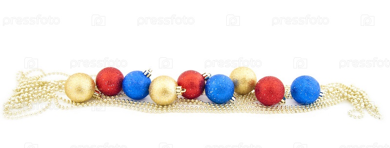 Новогодний шары с золотым бисером на белом фоне