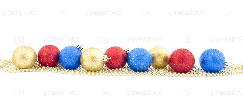 Новогодний шары с золотым бисером крупным планом на белом фоне